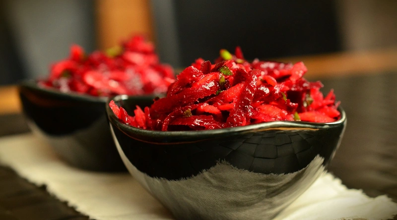 비트를 건강하게 섭취하려면 다양한 방법으로 요리할 수 있습니다. 가장 대표적인 방법은 비트즙이나 샐러드를 만드는 것입니다. 비트를 잘게 썰어 다양한 채소와 함께 드레싱과 함께 섞어 먹으면 맛있고 영양가 있는 샐러드가 됩니다.