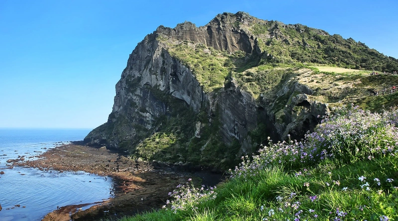 수산봉은 새별오름에 비해 수월하게 오를 수 있는 오름으로, 특히 '그네존'이라 불리는 포토존이 유명합니다. 이곳은 짧은 시간 안에 멋진 풍경을 담을 수 있어 바쁜 여행 일정 중에도 잠시 들러 좋은 사진을 남길 수 있습니다. 정상에서는 제주도의 아름다운 경관을 한눈에 볼 수 있으며, 매화꽃이 피는 시기에는 더욱 아름다운 모습을 자랑합니다.